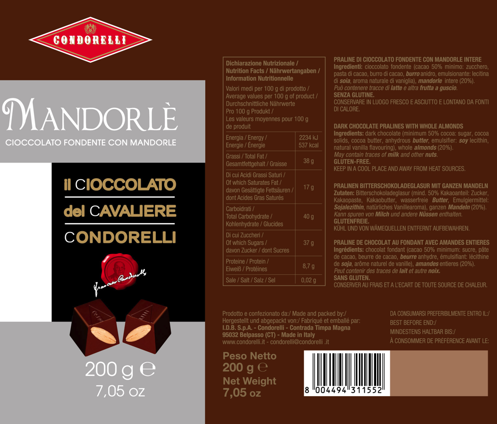 10 grammi di cioccolato fondente finissimo e 2 mandorle tostate intere combinati nel cioccolatino più amato.