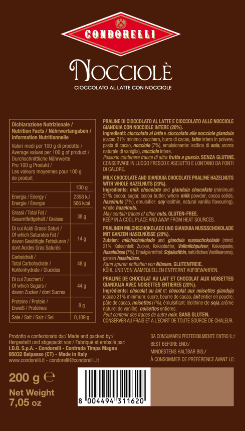 10 grammi di cioccolato al latte finissimo e 2 nocciole tostate intere combinati nel cioccolatino più amato.