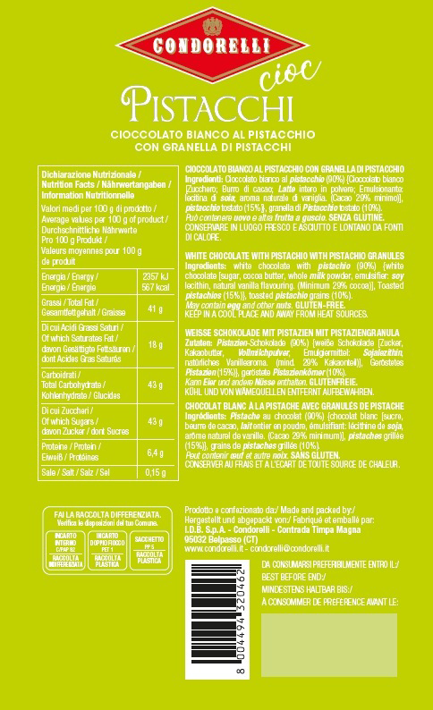 Praline di cioccolato al pistacchio con granella di pistacchio tostato all’interno.