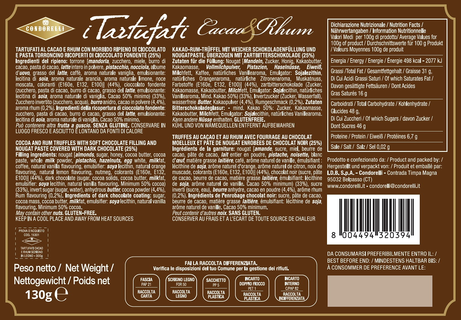 Mini tartufi di pasta torroncino, rhum e cioccolato. Morbidi e aromatici con un intenso gusto di Rhum e cioccolato.